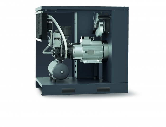 Los Compresores de la serie POLAR estan equipados con motores electricos de alta eficiencia con proteccion IP55 y clase de transmison de energia F. El aislamiento para el grupo tornillo se logra a traves de un acoplamiento flexible y un par de engranajes helicoidales. Esto permite una alineacion perfecta de los distintos componentes, lo que permite la maxima eficiencia en la transmision de energia.