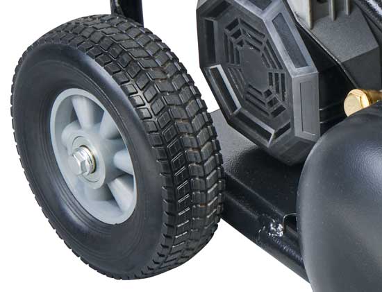 Grandes ruedas de goma que se adaptan al terreno, no se desinflan y no se pinchan. |