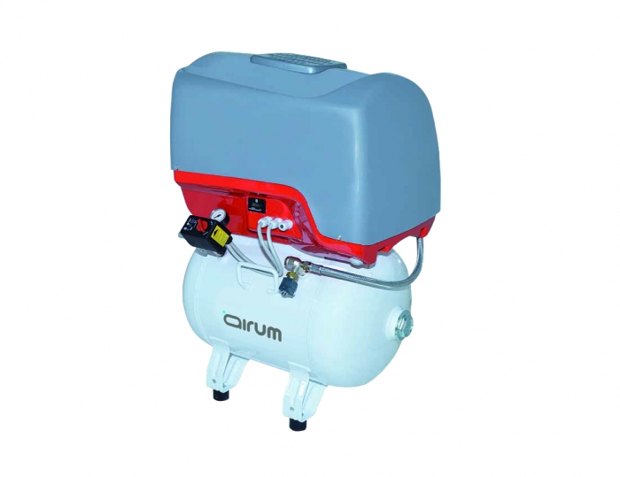 Compresor de pistón dental con carcasa insonorizada SKY, reduce 10db/1m el ruido.