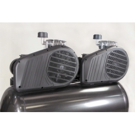 Compresor de transmisión por correa en tandem. Este modelo es ideal para talleres y aplicaciones que quieren maximizar la cantidad de aire que uno puede obtener.