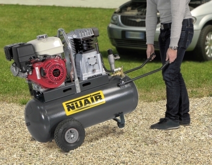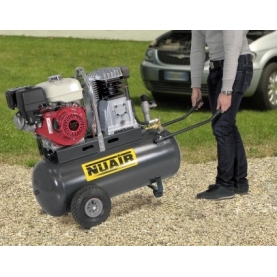 ompresores con motor de gasolina, supervisados por HONDA. Montados sobre deposito de 100 lts. Motor de explosión HONDA conforme a las más severa normativa de emisiones. Regulador de presión sobre-dimensionado con doble salida de aire. Barra adicional para levantar