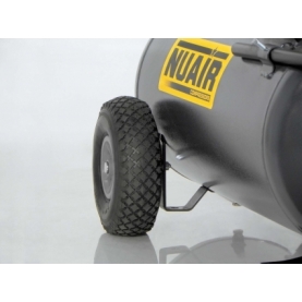 la unidad por medio de polipasto o montacargas. El doble asidero y las ruedas semineumáticas permiten su transporte sobre cualquier terreno. Las ruedas semi-neumáticas, ni se pinchan ni se deshinchan. Robusta rejilla metálica para la protección de todos los elementos en movimiento.