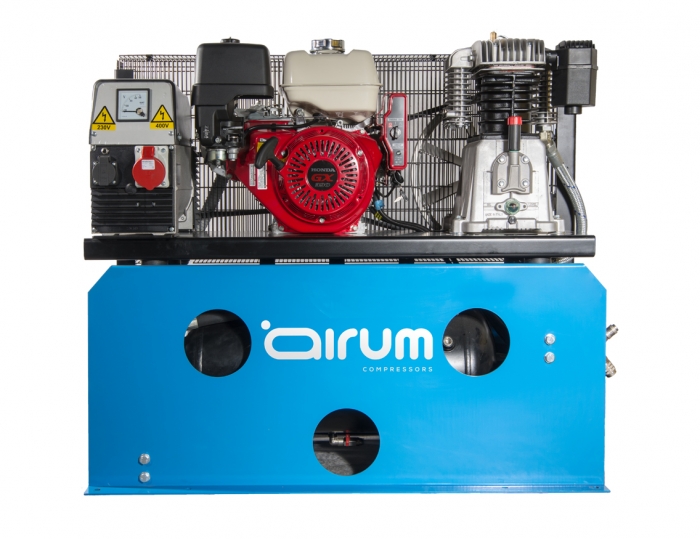 Puede disponer de las funciones de compresor, generador, fácilmente instalable en su furgoneta y siempre listo para el trabajo con su ágil y versátil motor gasolina de cuatro tiempos. También esta disponible la versión SOLO en bancada para aplicaciones especiales.