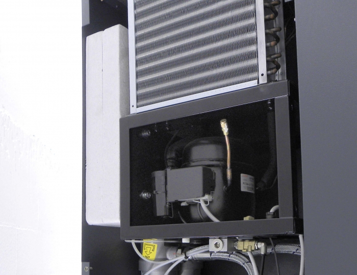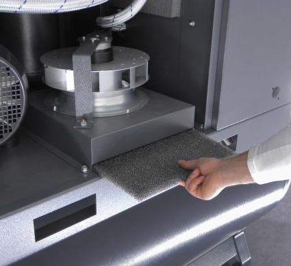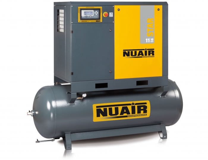 COMPRESOR TORNILLO + CALDERA+ SECADOR + FILTROS + CONTROL ELECTRONICO  ETIV provisto de display con extensa gama de mensajes y  led de aviso de anomalias y funciones especiales. El nivel sonoro mas bajo del mercado  gracias al especial diseno de sus componentes.