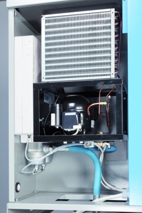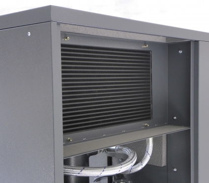 COMPRESOR TORNILLO + CALDERA+ SECADOR + FILTROS + CONTROL ELECTRONICO ETIV provisto de display con extensa gama de mensajes y led de aviso de anomalias y funciones especiales. El nivel sonoro mas bajo del mercado gracias al especial diseno de sus componentes.