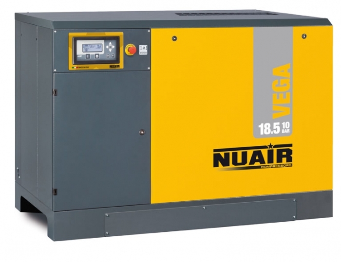 COMPRESOR TORNILLO con CONTROL ELECTRONICO ETIV provisto de display con extensa gama de mensajes y led de aviso de anomalias y funciones especiales. El nivel sonoro mas bajo del mercado gracias al especial diseno de sus componentes. Con tratamiento de aire interno.
