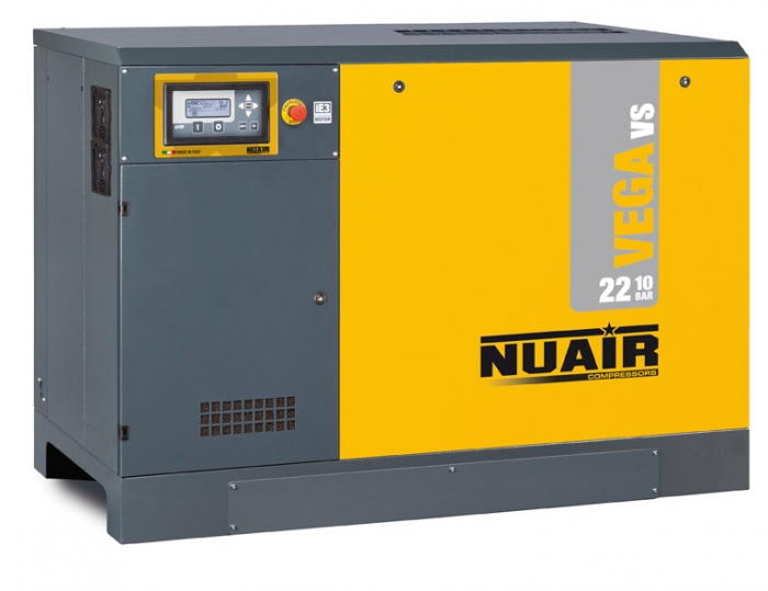 COMPRESOR TORNILLO BASE con CONTROL ELECTRONICO ETIV provisto de display con extensa gama de mensajes y led de aviso de anomalias y funciones especiales. Correa Poly-V de elevada eficiencia, ventilador centrifugo, panel pre-filtrado. Con Variador de Velocidad variable.