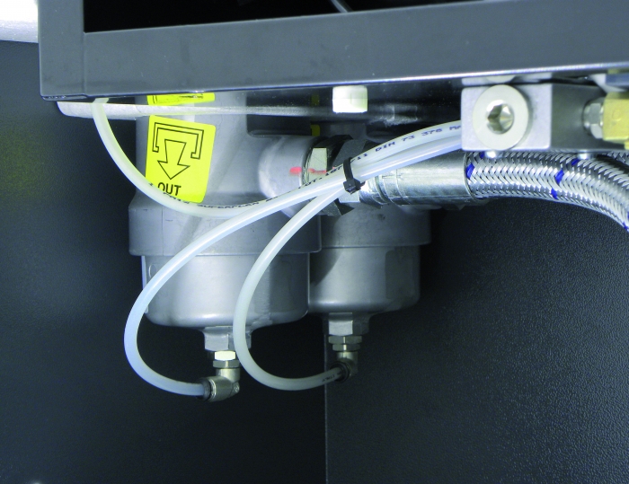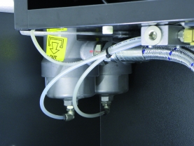 COMPRESOR TORNILLO con CONTROL ELECTRONICO ETIV provisto de display con extensa gama de mensajes y led de aviso de anomalias y funciones especiales. El nivel sonoro mas bajo del mercado gracias al especial diseno de sus componentes. Con secador interno y 2 filtros de linea.